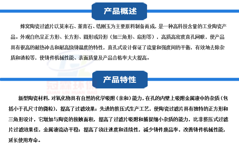 - 蜂窩陶瓷過濾棒具有比表面積大,孔徑均一、質(zhì)量穩(wěn)定、機(jī)械強(qiáng)度高、耐熱沖擊的特點(diǎn),用于冶金,電子電器、鑄造行業(yè)金屬熔融物過濾,可取的以下效果:凈化除臭除菌,有效去除雜質(zhì)。